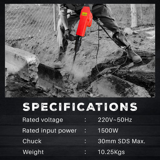 iBELL DH45-20 Demolition Hammer 30MM Heavy Duty Concrete Breaker 1900 BPM - Jack Hammer Demolition Drills with Flat and Bull Point Chisel - 6 Months Warranty