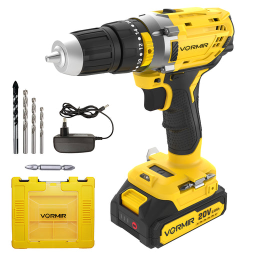 iBELL VORMIR VR CD12-45 Cordless Drill Driver, 12V, 0-400/0-1450 rpm, 25Nm Torque, 10 mm Chuck, 2 x 1500mAh Li-Ion Batteries, Fast Charger, 1 Hour Charging, 22 Accessories in BMC Box, Compact Design