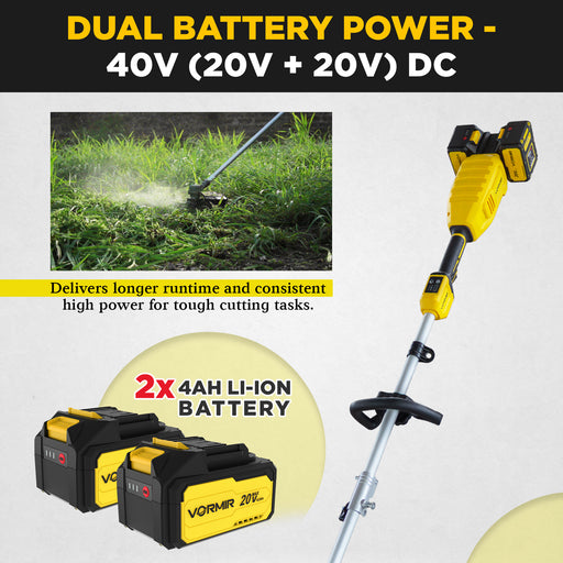 iBELL VORMIR VR BB40-42 40V (20V+20V) Cordless Brush Cutter | BLDC Motor | 4500/5300/6000 RPM Triple Speed | Ø420mm Blade | Dual 4.0Ah Batteries | Heavy-Duty Trimmer | 6 Months Warranty