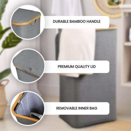 IBL 62-SB iBELL Laundry Basket With Lid Large Dirty Clothes Hamper Waterproof Collapsible Laundry Hamper-grey (41x33x70cm)