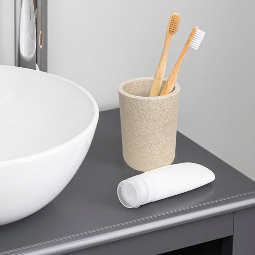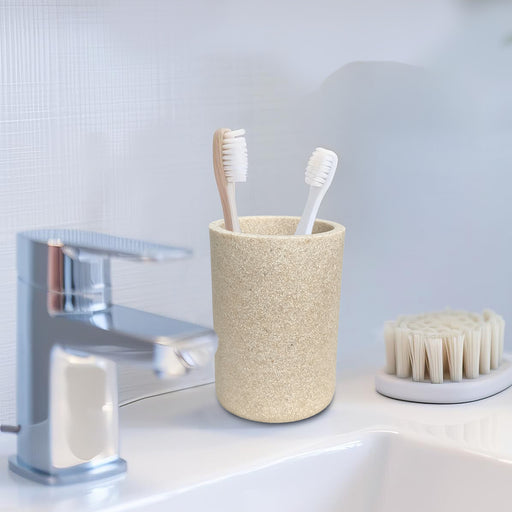 IBL 21-TB iBELL Resin Toothbrush Holder for Bathroom | Toothpaste, Makeup Brush Holder for Bathroom | Bathroom Accessories for Wash Basin | Home, Office, Bathroom Organizer | Beige