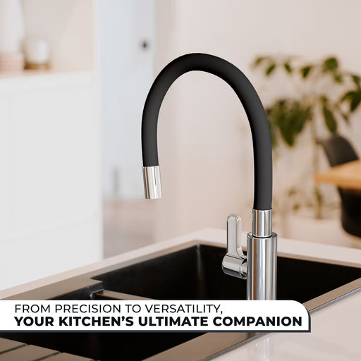IBL 62-Z1 iBell Swan Neck Kitchen Faucet with Flexible Swivel Spout - Black & Chrome Finish