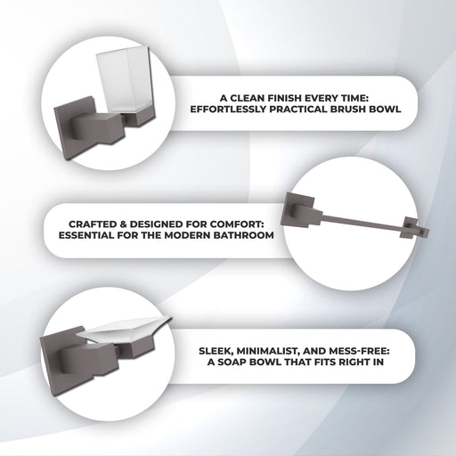 iBellIn stockMaterial: AcrylicColor: GreyNumber of Pieces: 7Included Items: Liquid soap dispenser, toothbrush holder, toilet brush, bin, and moreStyle: Modern