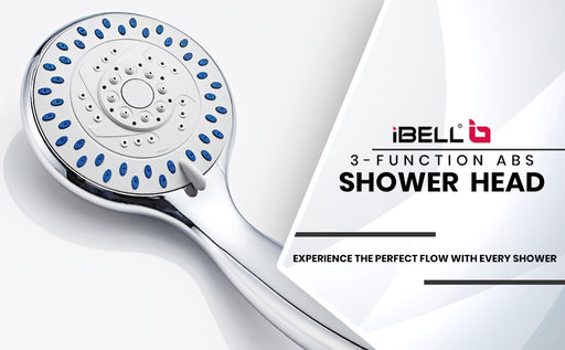 IBL 90 AB iBELL 3-Function ABS Shower Head | Water-Saving Rain Shower Head | Chrome Finish with Silica Gel Outlet | Includes 150 cm Stainless Steel Hose | Bathroom Accessories