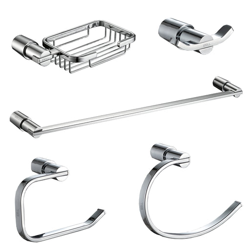 IBL 75-ZS iBELL 5-Piece Stainless Steel Bathroom Accessories Set, Chrome Finish (Towel Bar, Soap Holder, Toilet Paper Holder, Hook, Towel Ring)