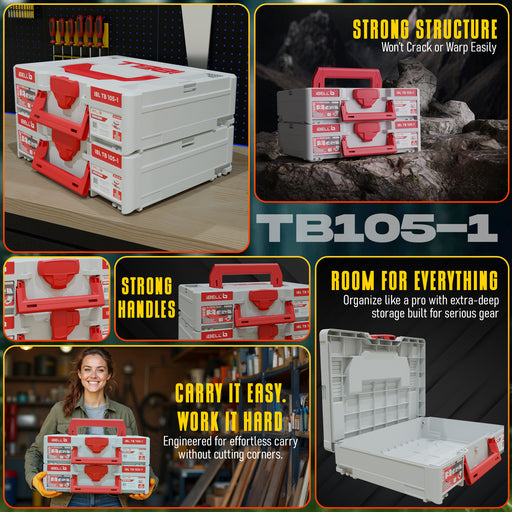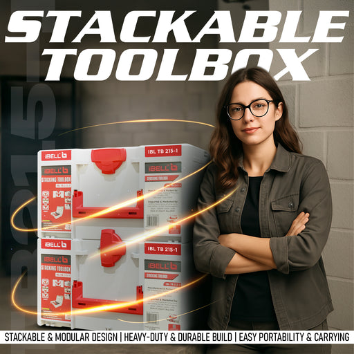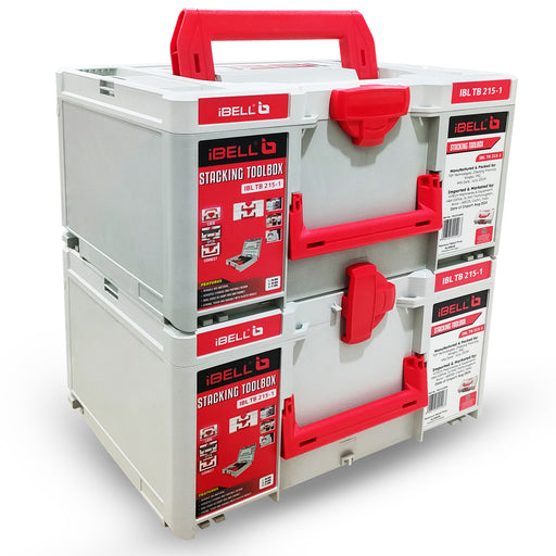 iBELL Dual Size Stackable Tool Storage Boxes - TB215-1 (Large) & TB105-1 (Medium) - Durable PC+ABS