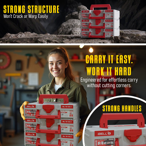 iBELL TB105-1 Stacking Multifunctional Tool Storage Box PACK OF 3 , PC+ABS plastic & 40 kg load capacity