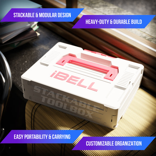 iBELL TB105-1 Stacking Multifunctional Tool Storage Box, PC+ABS plastic & 40 kg load capacity (when stacked) - 39x30x11 cm