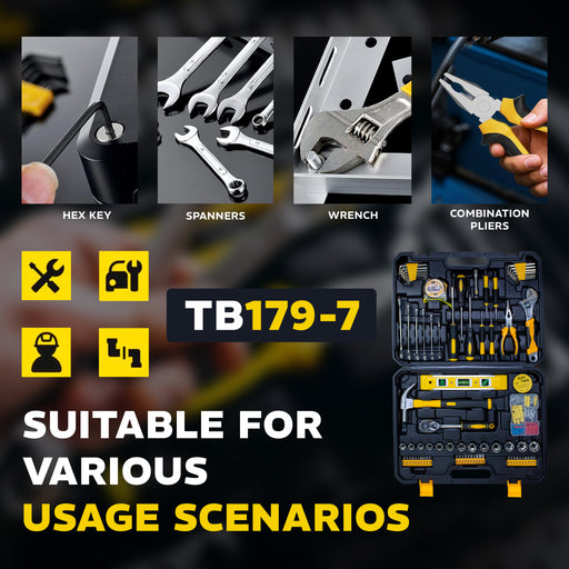 iBELL VORMIR TB179-7 Professional Tool Kit with Ratchet Set, 179-Piece Hand Tool Set with Sockets, Wrenches, Screwdrivers, Precision Bits & Case for Mechanics & Home Use
