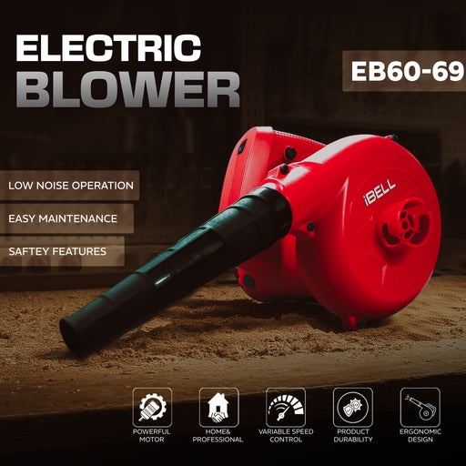 iBELL Air Blower EB 60-69 600W, RPM 14000, Blow Rate 3.3M/Min, with Vacuum dust Collecting Bag, Professional Quality,Variable Speed Control