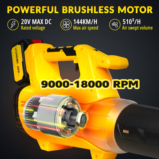 iBell Vormir VR BL21-98 20V MAX High-Performance Brushless Cordless Leaf Blower, 6-Speed Settings, Li-Ion 4000mAh, 144 km/h Air Speed, 510m³/h Air Volume, Lightweight Design