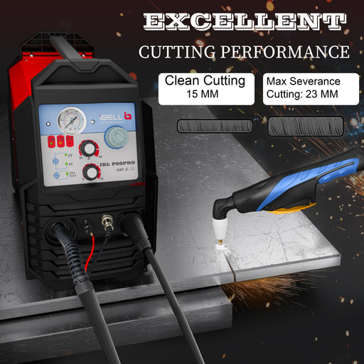 iBELL P60 PRO Plasma Cutter | 60A HF Pilot Arc Plasma Cutting Machine | 15mm Clean Cut, 23mm Severance | 220V, 10.6KVA | Adjustable Postflow & Air Pressure Control