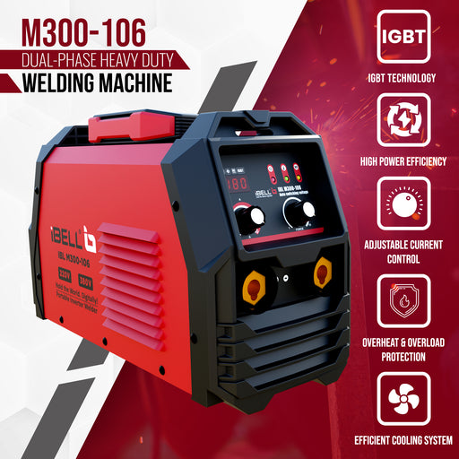 iBELL Dual-phase Heavy Duty Inverter ARC Welding Machine (IGBT) 300A, M300-106 with Hot Start, Anti-Stick Functions, Arc Force Control - 2 Year Warranty